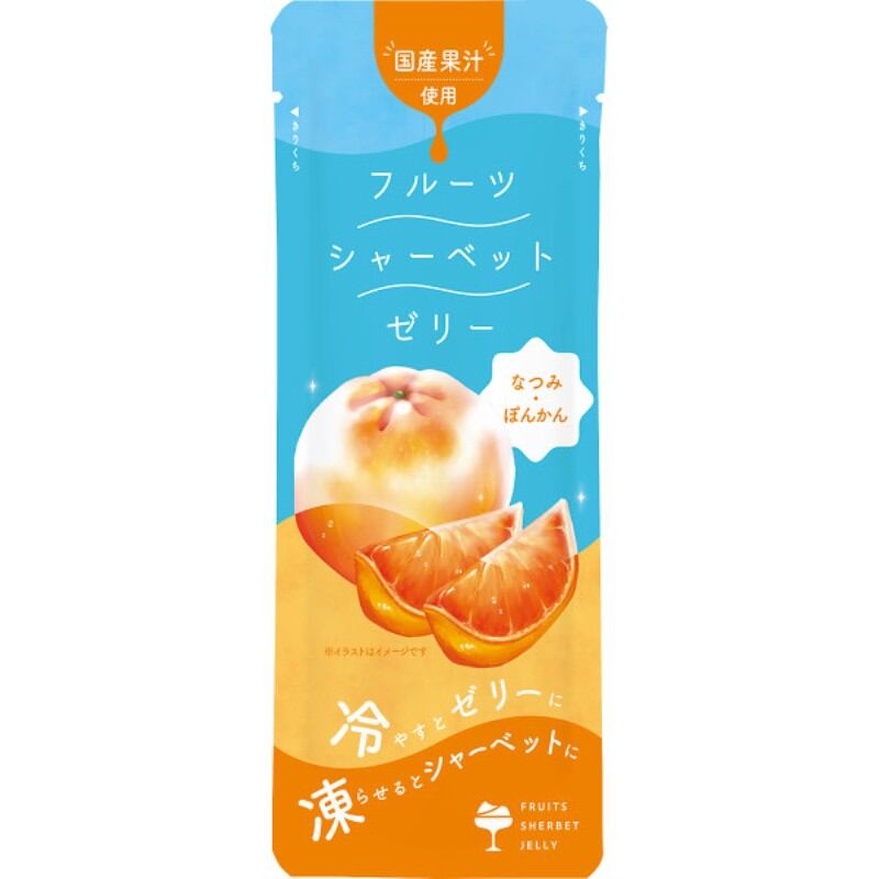 カーネーション花束と国産フルーツ果汁を使用した凍らせて食べるシャーベットゼリーのセット。冷やして食べるとぷるんとした食感の濃厚なゼリーとして、しっかりと凍らせて食べるとしゃきっとしたシャーベットとして。2通りの食べ方が楽しめます。パウチタイプで片手でも食べやすい形状です。