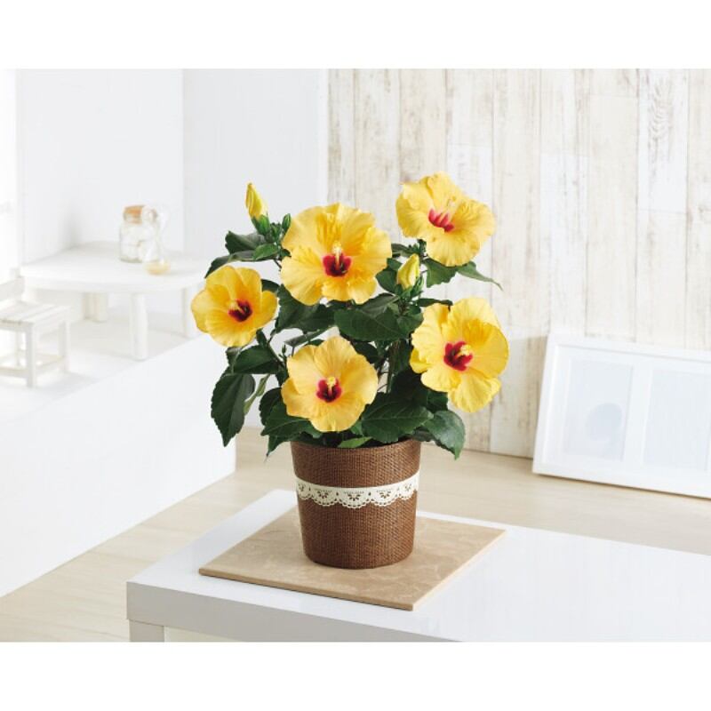 見ているだけで元気になる黄色のハイビスカス。花持ちがよく花を2〜3日咲かせ続ける特徴があり、まとまりよく生長します。園芸好きなお母さんへのプレゼントにピッタリ。