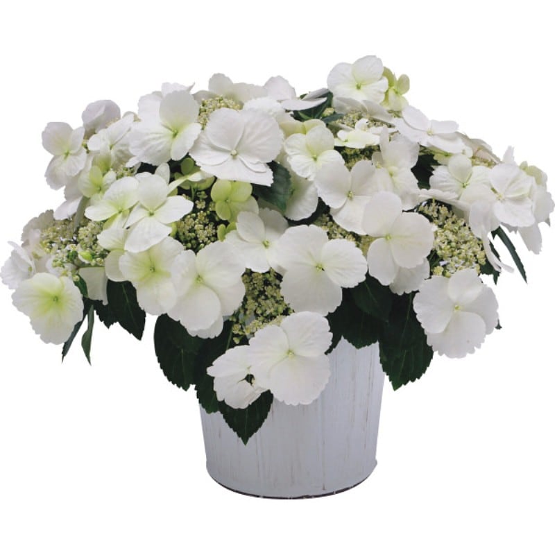 フラワー・オブ・ザ・イヤー(2019−2020)を受賞のアジサイ。全ての側芽から花が咲く、アジサイの常識を覆す画期的な品種。咲き始めはライムグリーン、だんだんとホワイトへ、そして淡いピンクへ色づきます。