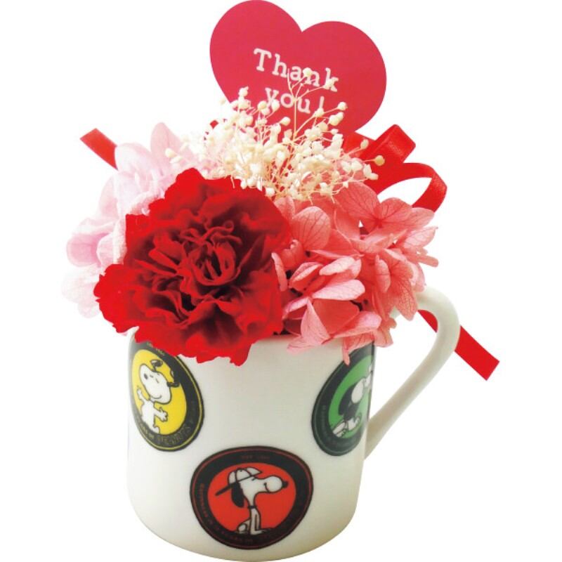 母の日ギフト スヌーピーフラワーミニカップ75th(プリザーブドフラワー) レッド商品のお届け期間:5.7(木)〜5.11(日)