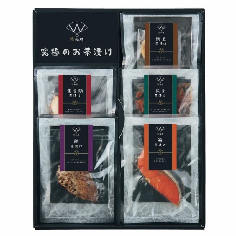 商品内容:●お茶漬け(金目鯛・穴子・鮭・鯛・帆立)各1、だしつゆ×5、具材×5