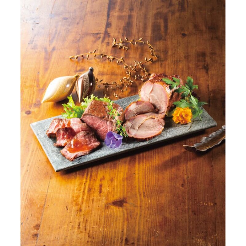東京・恵比寿にある日本料理店「賛否両論」。店主の笠原将弘が監修した、和のローストビーフ&ローストポークギフトです。ローストビーフ、ローストポークともにお肉の旨みを引き立てるために「焙煎黒胡椒」を程よく使用しています。