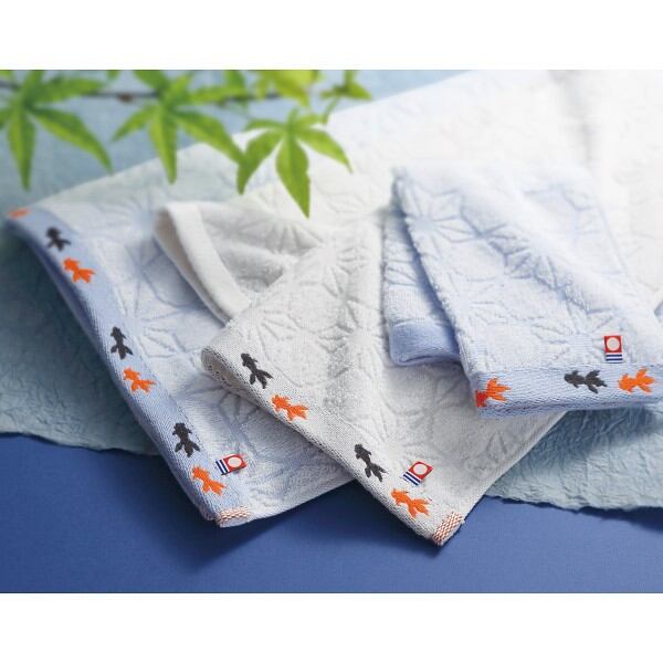 今治産金魚タオル バス・フェイス・ウォッシュタオルセット ブルー KG-26500