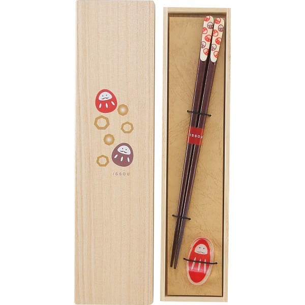 吉兆桐箱入 箸・箸置揃 夢だるま 黒猫と椿 39286