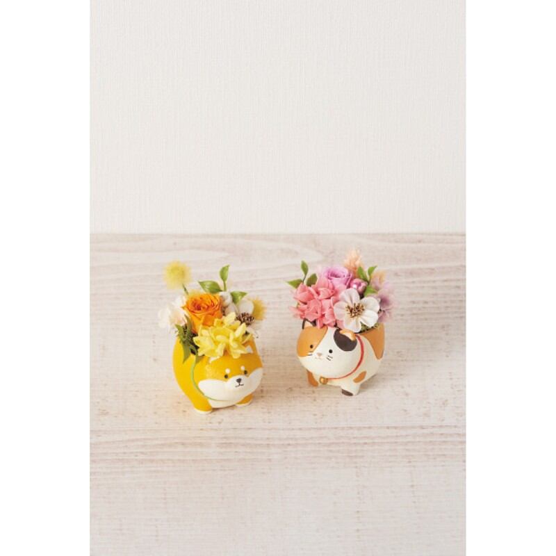 華やかなプリザーブドフラワーを手のひらサイズの可愛らしいアニマルポットに合わせました。アニマルの表情にほっこりします。