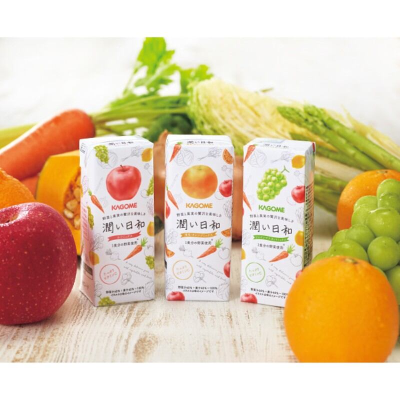 「潤い日和」ふじミックス・清見オレンジミックス・シャインマスカットミックスの3種を詰め合わせたギフトです。1本(200ml)に1食分の野菜120g分を使用しながら、フルーティーで贅沢な美味しさをお楽しみいただけます。