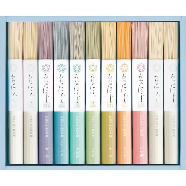 独特のコシと、のど越しが自慢の手延べ素麺を三輪の虹に見立てた彩り豊かな七色の素麺に仕上げ、昔ながらの製法により一束ずつ線香巻きで包装いたしました。お子様のお名前とお誕生日を入れることができます。お世話になったあのお方にお子様のお名前をお披露目するのにピッタリ。