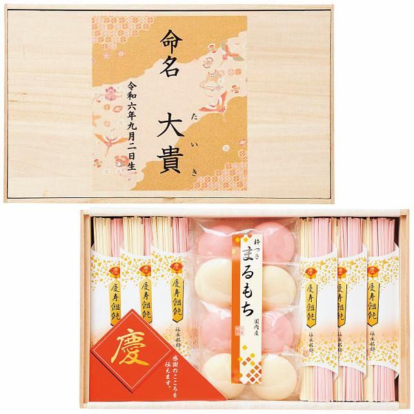 慶び事にふさわしい慶寿紅白饂飩に、お目出度い丸もちを詰め合わせたセットです。ふたのラベルにお祝いのシーンにふさわしいメッセージをお入れするオーダーメイドギフトです。