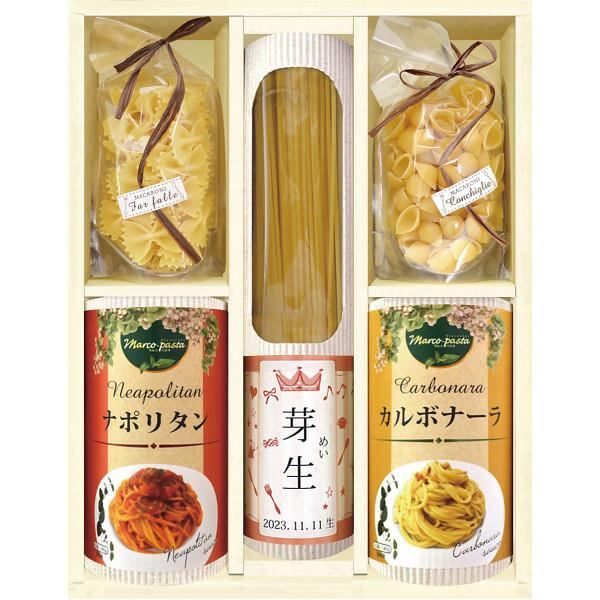 商品内容:●スパゲティ(200g)×1、マカロニ(ファルファーレ60g)×1、マカロニ(コンキリエ60g)×1、パスタソース(ナポリタン・カルボナーラ)140g×各1
