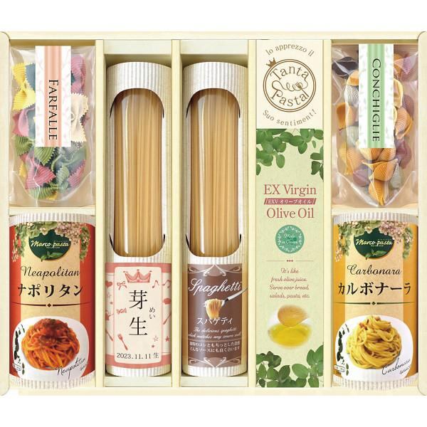 商品内容:●スパゲティ(200g)×2、自然色パスタ(ファルファーレ40g)×1、自然色パスタ(コンキリエ60g)×1、パスタソース(ナポリタン・カルボナーラ)140g×各1、エクストラバージンオリーブオイル8g×5