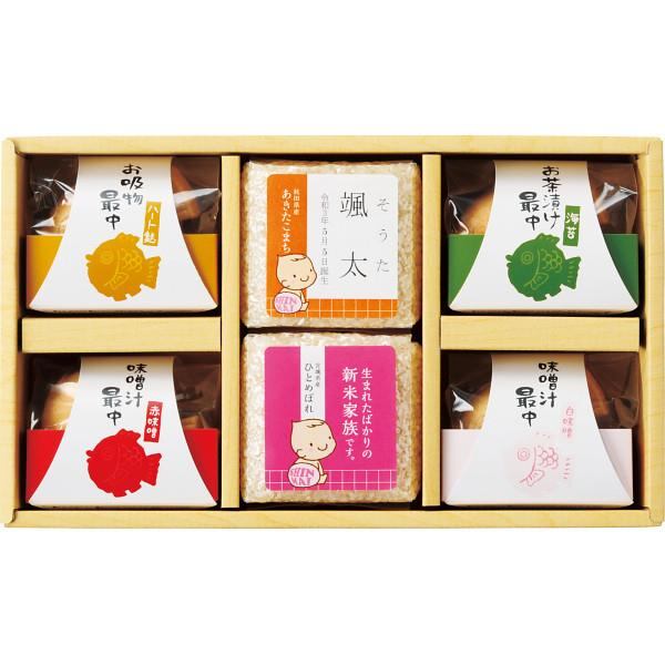 商品内容:●即席みそ汁最中(赤みそ・白みそ)・即席吸物最中・海苔茶漬け最中・秋田県産あきたこまち300g・宮城県産ひとめぼれ300g×各1