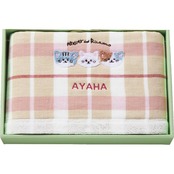今治タオルの片面ガーゼ織りで、やさしい風合いのタオル生地に刺しゅうでお名前をお入れ致します。