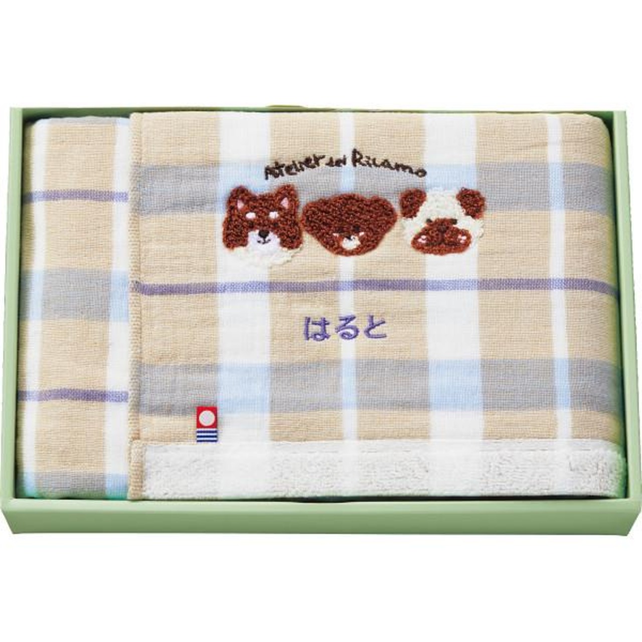 今治タオルの片面ガーゼ織りで、やさしい風合いのタオル生地に刺しゅうでお名前をお入れ致します。