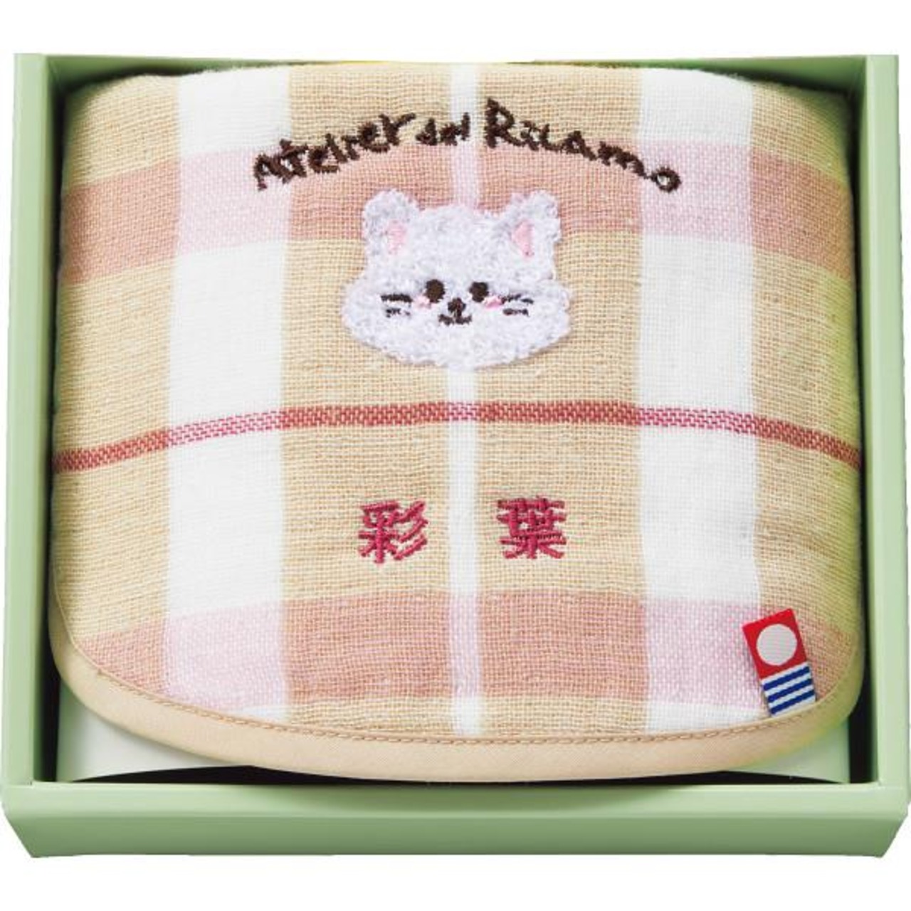 今治タオルの片面ガーゼ織りで、やさしい風合いのタオル生地に刺しゅうでお名前をお入れ致します。