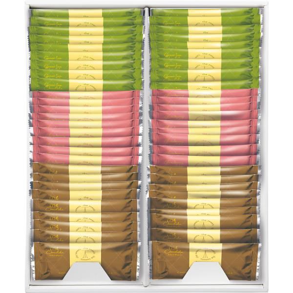 サクッと軽い食感のワッフルクッキーに、3種類のチョコをコーティング。