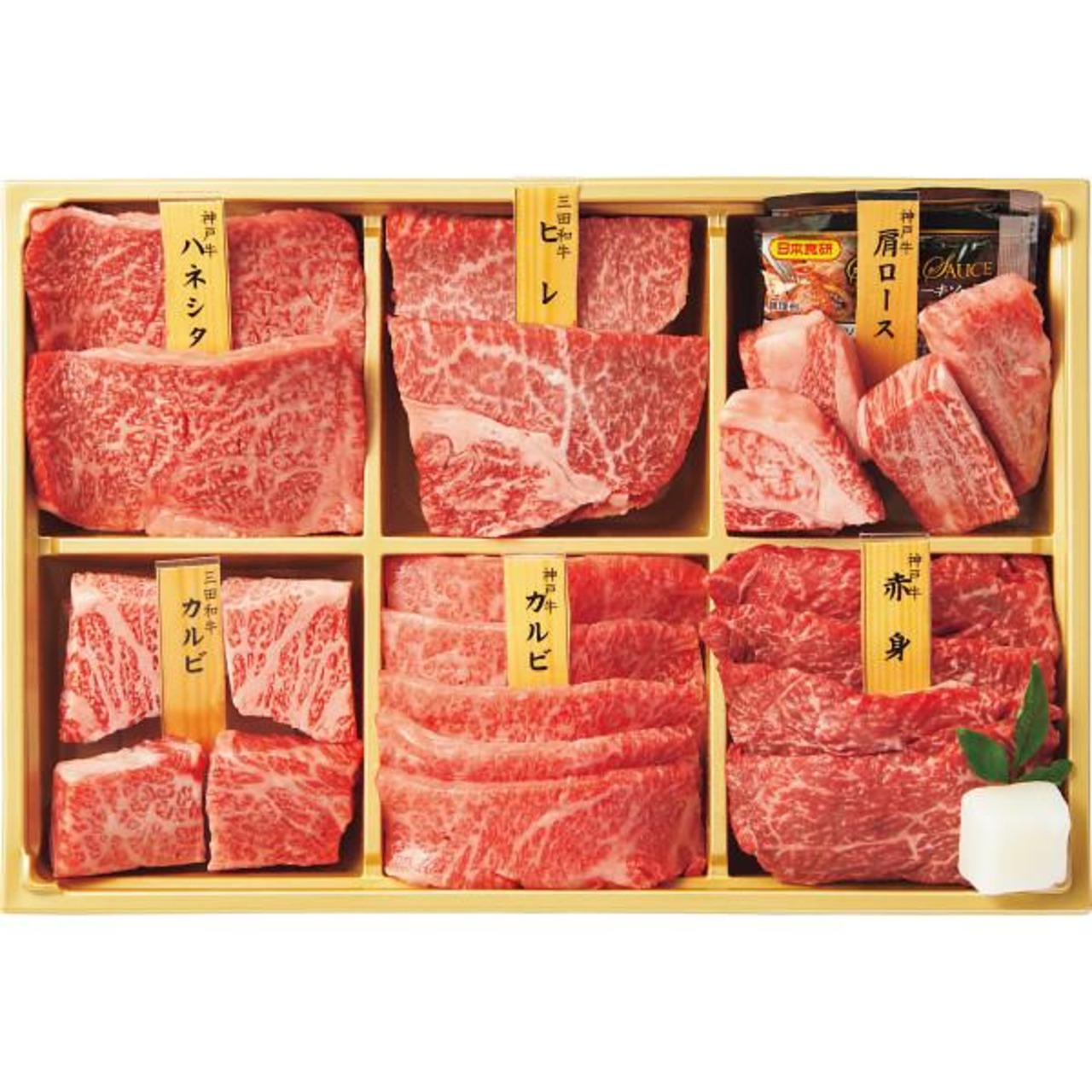 商品内容:●<一の重>兵庫県産神戸牛ハネシタミニステーキ60g、兵庫県産三田和牛ヒレミニステーキ60g、兵庫県産神戸牛肩ロースサイコロステーキ60g、兵庫県産三田和牛カルビサイコロステーキ60g、兵庫県産神戸牛カルビ焼肉用60g、兵庫県産神戸牛赤身焼肉用60g<二の重>兵庫県産三田和牛赤身ブリスケ焼肉用60g、兵庫県産神戸牛肩ロースうす切り60g、兵庫県産三田和牛リブロース焼肉用60g、兵庫県産神戸牛赤身肩肉うす切り60g、兵庫県産三田和牛トロバラうす切り60g、兵庫県産三田和牛赤身ランプうす切り60g【別添】牛脂9g×2、ステーキソース20g×2