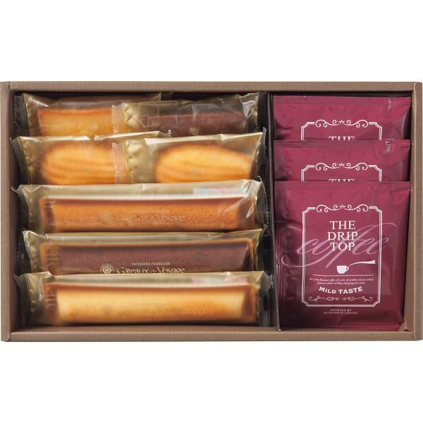 商品内容:●フィナンシェ(プレーン・ショコラ)×各1、マドレーヌ×2、バトン(バニラ・ショコラ・キャラメル)×各1、ドリップ珈琲マイルドテイスト×3
