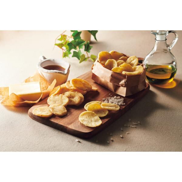 国産じゃがいもを使用した厚切りのポテトチップスでサクほろのリッチな食感とじゃがいも本来の味わいが楽しめる、贈られた人がほっとする、幸せな気分になるカジュアルギフト。オリーブソルト味はロレーヌ岩塩を使用。シンプルな塩味が国産じゃがいものおいしさを引き立てます。オリーブオイルの香りがほんのりと口の中に広がりさわやかな味わいに仕上げました。メープルバター味はメープル風味のバターのこっくりとした甘さが楽しめます。厚切りポテトチップスのサクほろのリッチな食感との相性抜群。ほんのりバターの塩味もあって、大人にも子どもにも好まれる優しい味わいです。