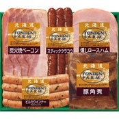 商品内容:●炭火焼ベーコン(スライス)80g、スティッククラコウ(ソフトサラミソーセージ)80g、燻しロースハム(スライス)60g、ピルカウインナー120g、豚角煮160g
