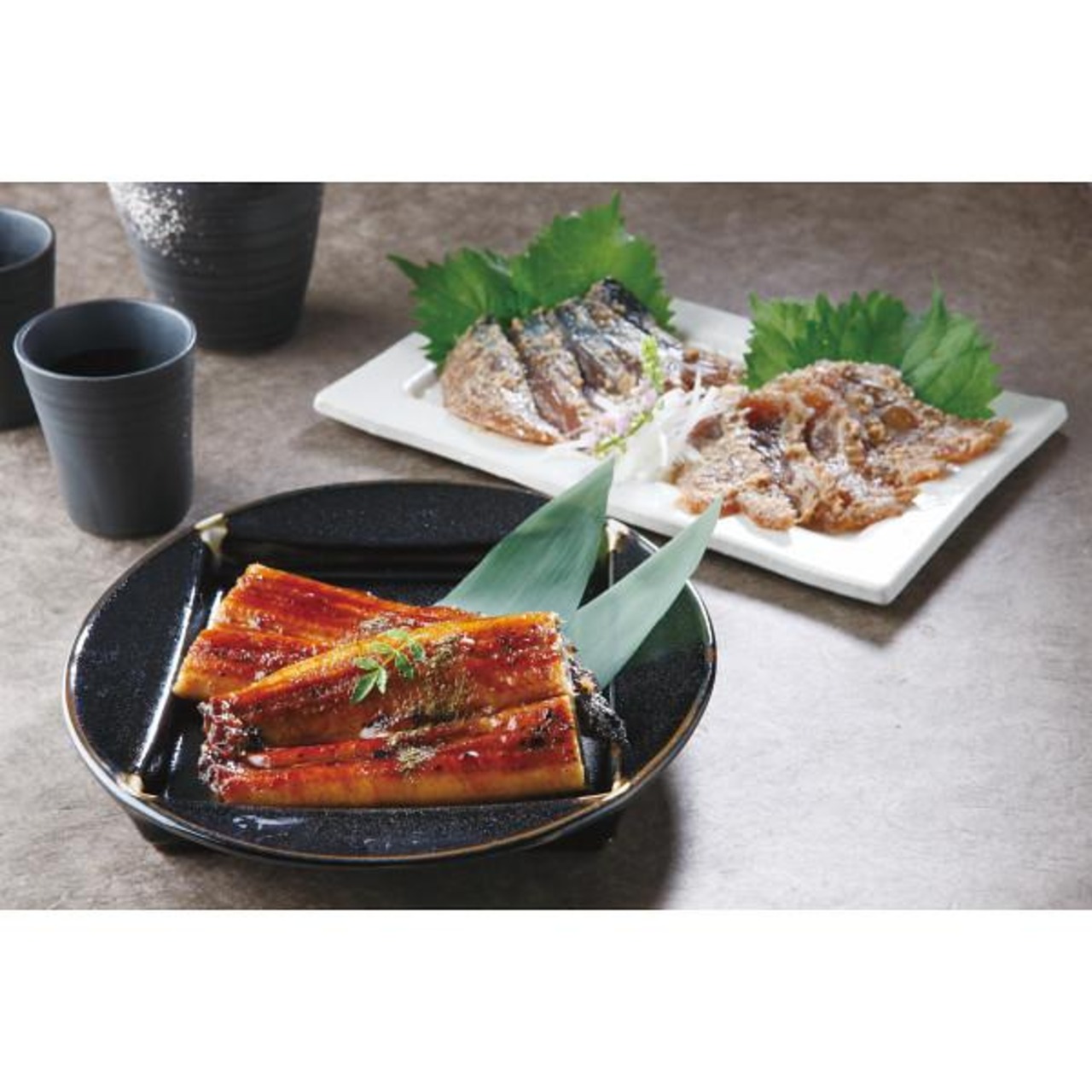 国産のうなぎをじっくりと焼き上げ丁寧に仕上げたうなぎの蒲焼(長焼き)と玄界灘の荒波にもまれた鯖や鯛は身がしまり、その美味しさを引き出した「ごま鯖」と「ごま鯛」とのセットです。