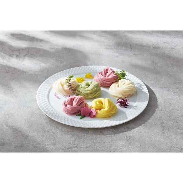 赤しそ、かぼちゃ、抹茶を練り込んだ、色彩、風味豊かな素麺。食卓を華やかに演出するひと品です。