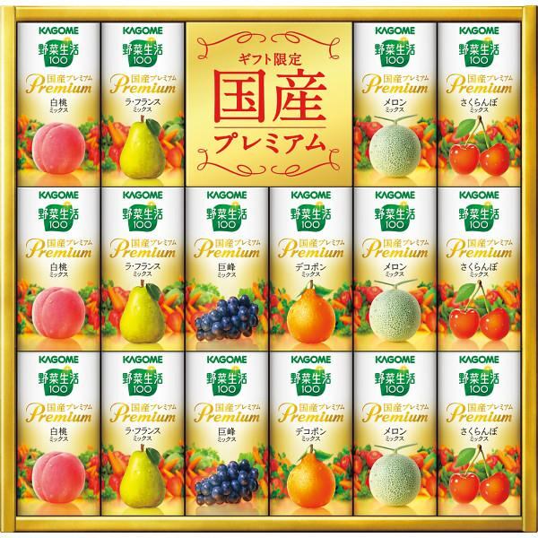 商品内容:●野菜生活100国産プレミアム(白桃ミックス・ラフランスミックス・メロンミックス・さくらんぼミックス)各125ml(紙製容器)×各3・野菜生活100国産プレミアム(デコポンミックス・巨峰ミックス)各125ml(紙製容器)×各2(※国産:飲料に含まれている野菜・果物)