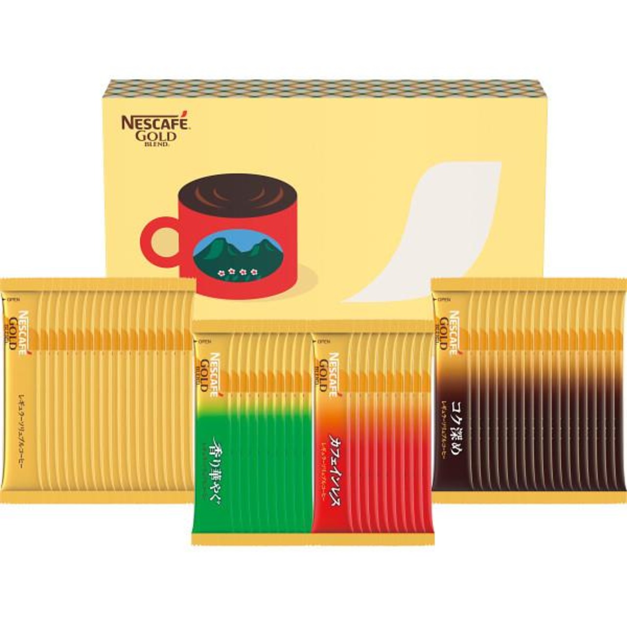 商品内容:●ネスカフェスティックブラックコーヒー(ゴールドブレンド2g×18・ゴールドブレンドコク深め2g×18・ゴールドブレンド香り華やぐ2g×10・ゴールドブレンドカフェインレス2g×10)