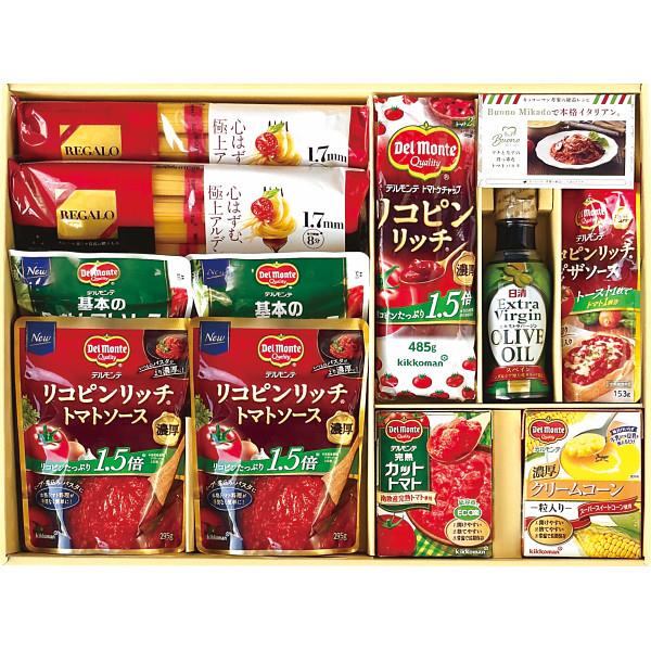 商品内容:●レガーロスパゲッティ400g×2、完熟カットトマト380g、クリームコーン粒入り(紙容器)380g、リコピンリッチトマトソース295g×2、基本の完熟トマトソース295g×2、日清エキストラバージンオリーブ油145g、リコピンリッチトマトケチャップ485g、リコピンリッチピザソース153g