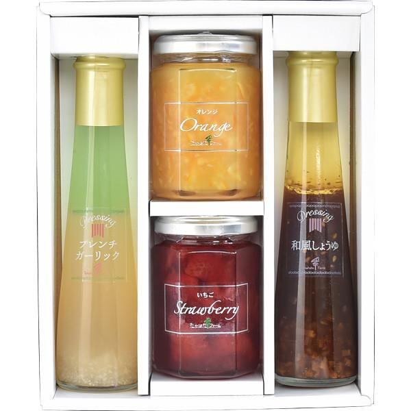 商品内容:●ジャム145g×2(オレンジマーマレード、いちご)、ドレッシング122ml×2(フレンチガーリック、和風しょうゆ)