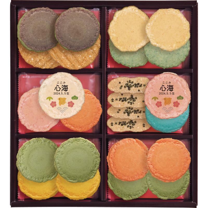商品内容:●紅白せんべいチーズサンド(1枚入)×2、紅色のえびせんべい(2枚入)×2、橙色のえびせんべい(2枚入)×2、緑色のえびせんべい(2枚入)×2、モッツァレラ&バジル(1枚入)×3、チェダー(1枚入)×3、ブルーチーズ&ハニー(1枚入)×2、カマベール&ブラックペッパー(1枚入)×2、ふた焼ごま(1枚入)×3、えび柚子胡椒(2枚入)×3、しょう油&山葵&椎茸(1枚入)×2、えび小笹(6枚入)×2、のりえびせん(2枚入)×2