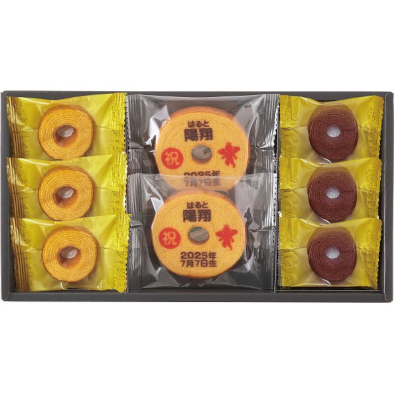 「絶妙なしっとり感を味わって頂きたい」との想いで職人が丹精込めて焼き上げたバウムクーヘンと食べやすい大きさにカットしたミニバウムの詰合せです。バウムクーヘンには直接お子様の名前・生年月日をお入れするオリジナルギフトです。
