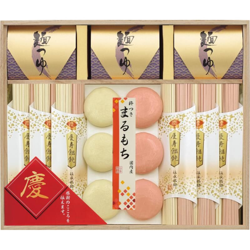 商品内容:●慶寿饂飩(紅)50g×6、慶寿饂飩(白)50g×6、丸もち(紅)30g×3、丸もち(白)30g×3、麺つゆ(希釈用)30ml×6