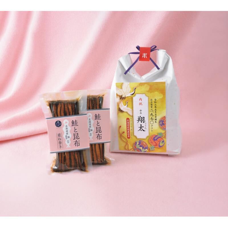 出生体重米 北海道産ななつぼし&北海道産鮭と昆布の重ね巻き(お名入れ) K80