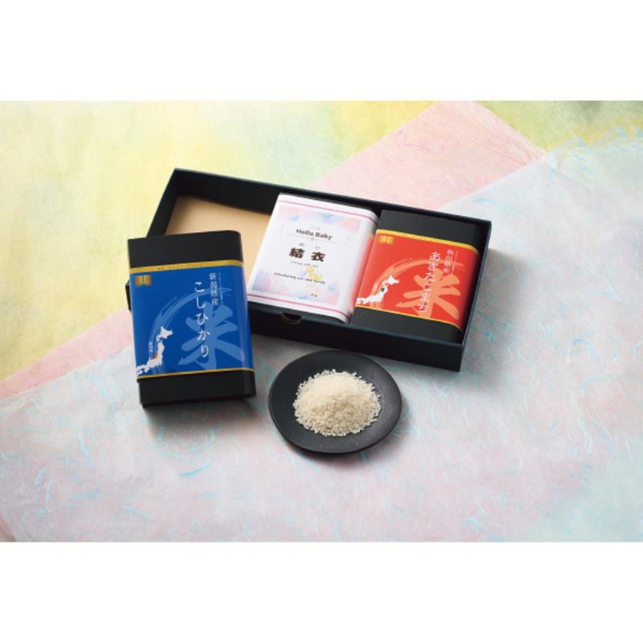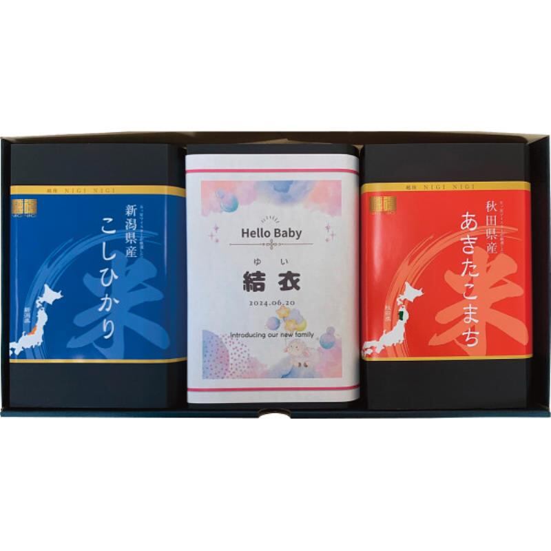 「米どころ新潟」新潟米を代表する「コシヒカリ」・秋田県のブランド米の代名詞「あきたこまち」・五ツ星マイスターが厳選した「ブレンド米」の食べくらべができます。お名前が入った可愛い巻紙でお届けします。