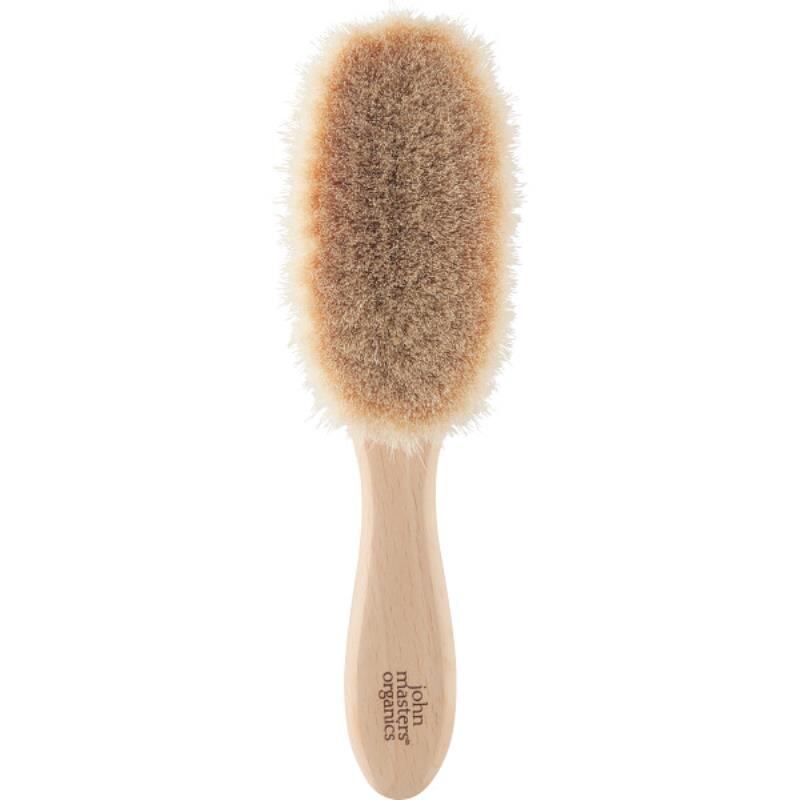 トウモロコシ由来のポリエステルで作られた生分解性のある人工毛と、なめらかなブナの天然木でできたブラシ。頭をなでるようなやさしい感触で型くずれもしにくい、毎日のブラッシングにぴったりのブラシです。天然木はベビーへの使用を配慮した無塗装仕上げ。