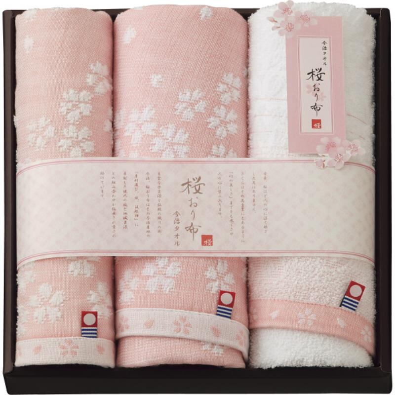 桜おり布 フェイス・ハンドタオルセット ピンク IS8630