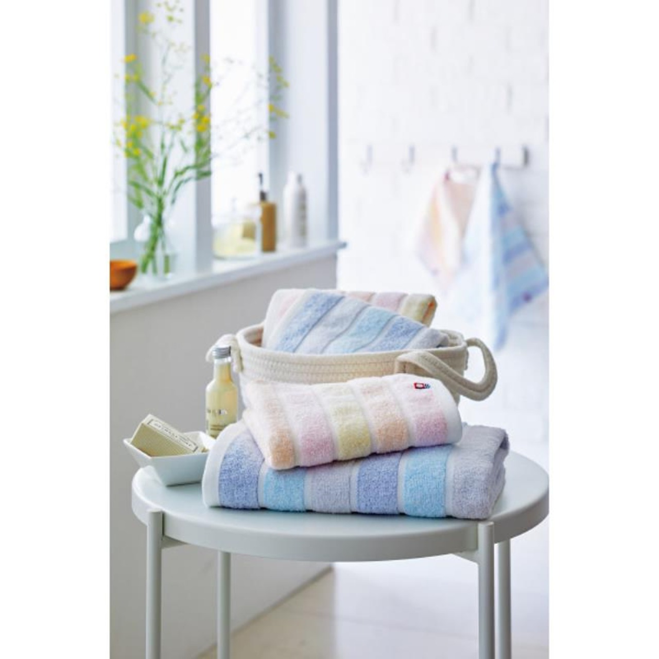 幅広く好まれるボーダー柄はさわやかな印象でどんな場面でも喜ばれます。心地よい色彩とデザインにこだわった、肌ざわりも存在感もやさしいタオルです。