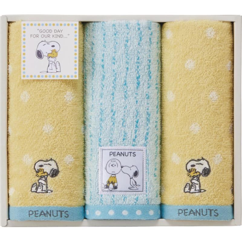 PEANUTSからハグをテーマに、スヌーピーが仲間に寄り添うシーンをモチーフにしました。 ハグするスヌーピーから優しさや思いやりが伝わるデザインです。 ドットとストライプのシンプルなパターンは子どもから大人まで使いやすく、内祝いにおすすめです。