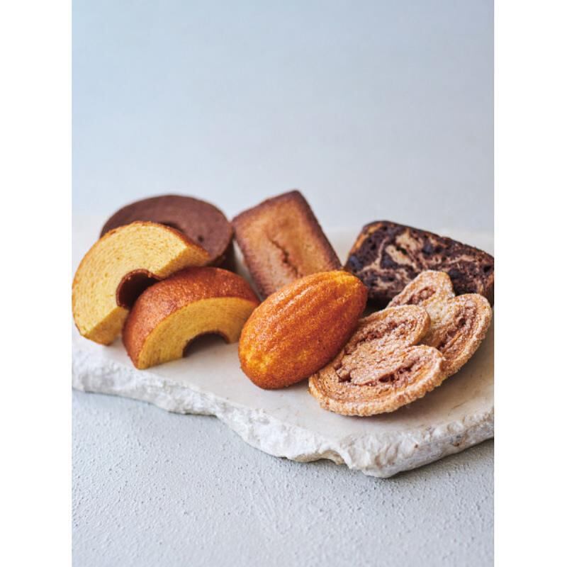 商品内容:●フィナンシェ・はちみつマドレーヌ・マロンケーク×各1、ケークアングレ・マーブルケーク・パルミエ・バームクーヘンプレーン・バームクーヘンショコラ×各2