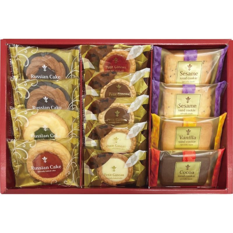 商品内容:●ロシアケーキ(マカロンストロベリー・フラワーキウイ×各1、リッチビター×2)、プチガトー(ストロベリー×1、ミルクチョコ・ホワイトチョコ×各2)、サンドクッキー(ココア・バニラ×各1、セサミ×2)