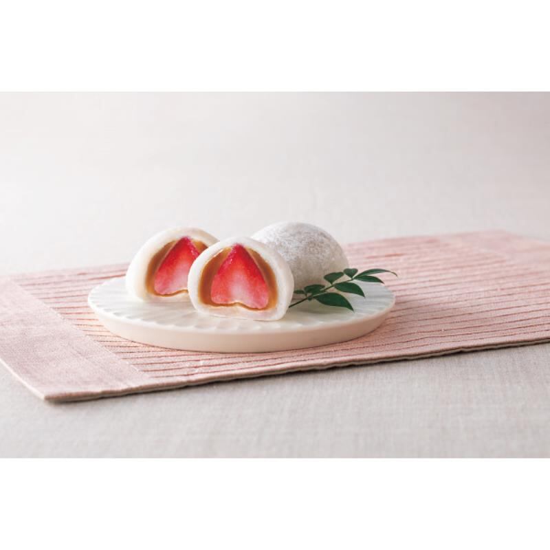 酸味のあるイチゴととろっと感がたまらないキャラメルソースを国産もち米を使用した羽二重餅で包み込んだ贅沢な大福です。