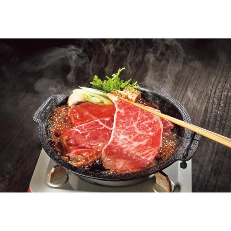 松阪牛の霜降りと赤身がセットになったすき焼きセット。ご家庭で手軽に老舗の味を堪能できます。