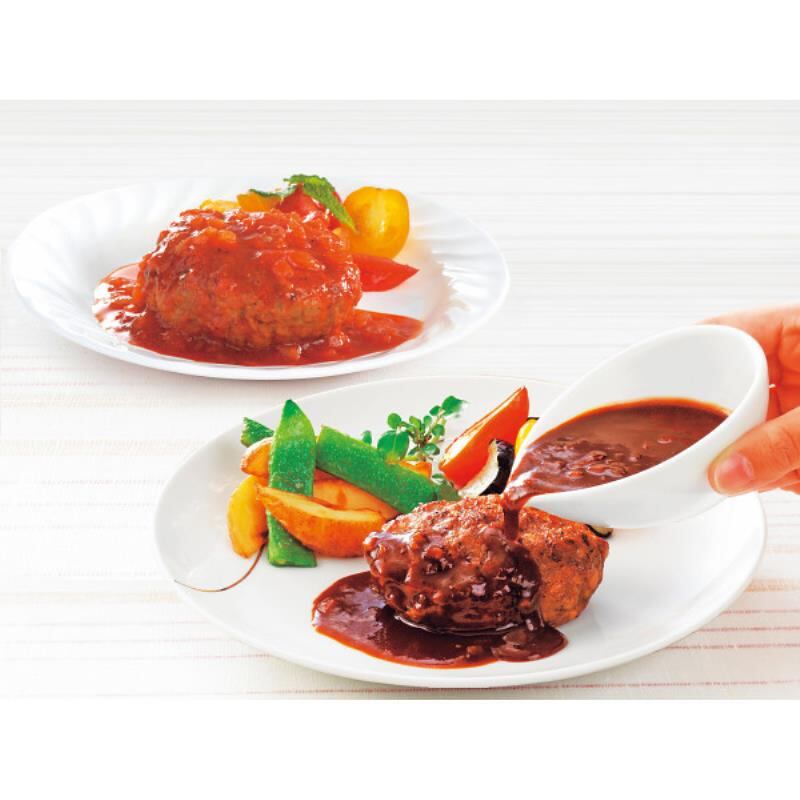 商品内容:●ハンバーグ(牛肉・豚肉使用)130g×8、トマトイタリアンソース40g・洋風デミグラスソース40g×各4