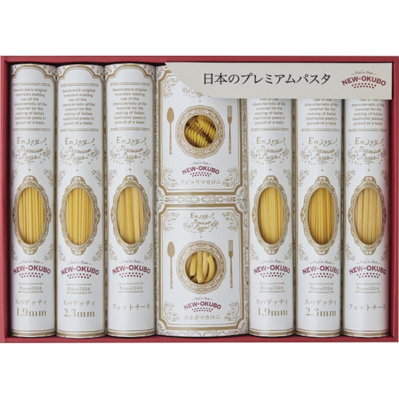 商品内容:●スパゲティ(1.9mm)300g・スパゲティ(2.3mm)300g・フェットチーネ300g×各2、エルボマカロニ100g・フジッリマカロニ100g×各1