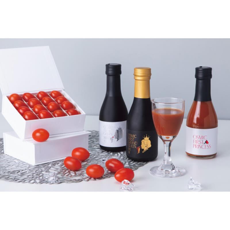 3つの異なる味わいを楽しめるフルーツトマトジュースの特別セット。優雅な甘さとなめらかに続く余韻が特徴の「グランドクイーン」、濃密な味わいの「クイーン」と酸味と甘さの調和が絶妙の「プリンセス」。砂糖・塩・水一滴さえも不使用。職人が丁寧にしあげたこだわりの逸品です。