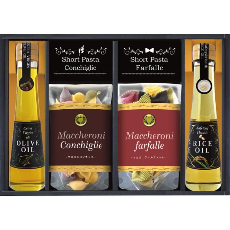 商品内容:●エクストラバージンオリーブオイル100g×1、ライスオイル110g×1、カラーパスタ(コンキリエ60g・ファルファーレ40g×各1)