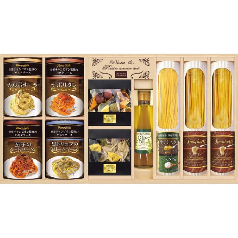商品内容:●スパゲティ130g×2、生パスタ(リングイネ)100g×1、自然色パスタ(コンキリエ)60g×1、自然色パスタ(ファルファーレ)40g×1、パスタソース(茄子のミートソース・ナポリタンソース・カルボナーラソース・黒トリュフのクリームソース)各140g×各1、パスタソルト30g×1、エクストラバージンオリーブオイル100g×1