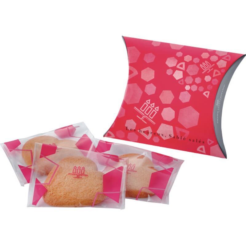 ハートの形がほほえみを呼ぶ、さっくりとした食感のサブレ。思わず笑顔になるかわいらしいハートの形は贈り物にぴったりです。やさしい甘さにほんのり塩味が広がります。