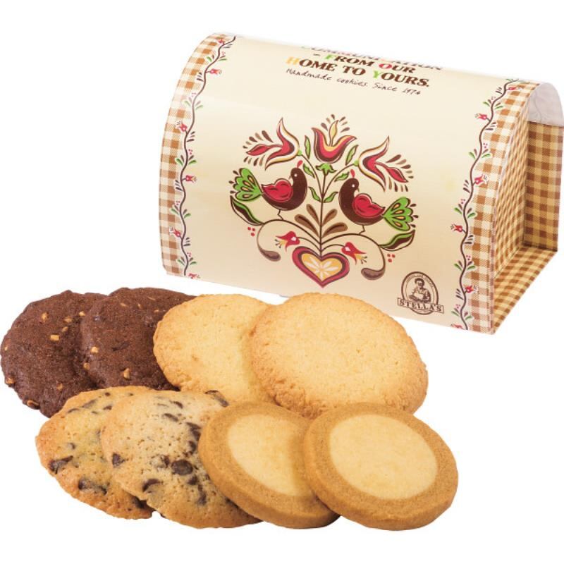 ステラおばさん1番人気のチョコレートチップクッキーや、ダブルチョコナッツなどチョコ系のクッキーが入っています。手ごろにプレゼントできる商品です。