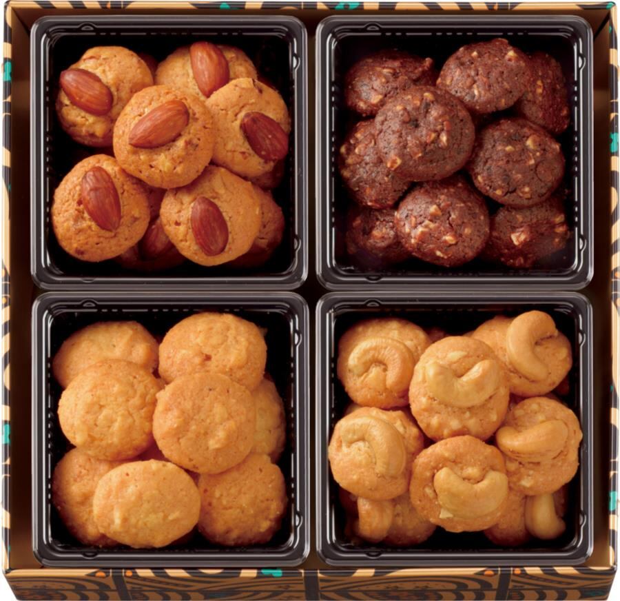 商品内容:アーモンド40g、カシューナッツ40g、マカダミアナッツ40g、チョコレートチップ40g